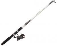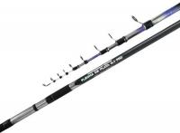 Con 2 tramos y 2,40 mts de largo. Composición grafito. Pasahilos reforzados y puntera en óxido de aluminio. Empuñadura en eva. Portareel combinado en ABS y metal.