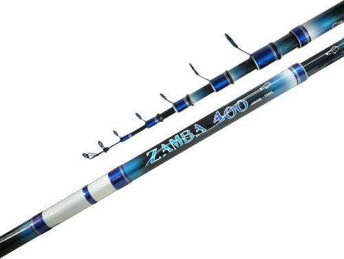 Con 2 tramos y 3,60 mts de largo. Composición en grafito. Mango de goma eva. Con 5 pasahilos. En colores celeste y blanco.