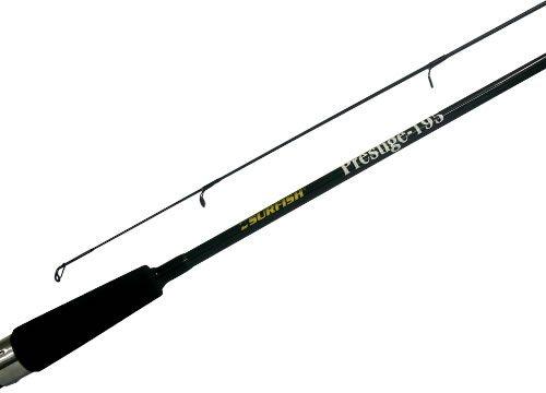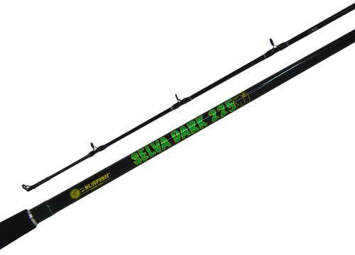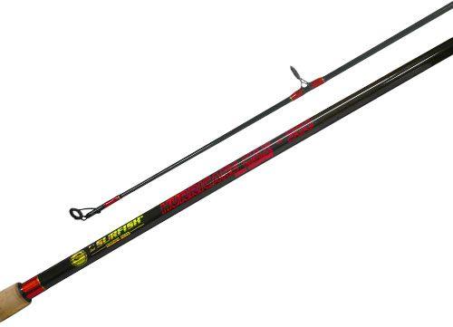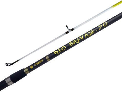 Con 2 tramos y 1,95 mts de largo. Composición grafito. Con 6 pasahilos reforzados. Puntera en óxido de aluminio. Empuñadura en eva. Color negra. Acción media pesada. Portareel gatillo combinado en ABS y metal.
