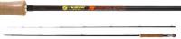 Con 5 tramos y 2,55 mts de largo. Ideal para mosca. 100% grafito IM7. Con 9 pasahilos reforzados y puntera en acero cromado. Grip en corcho anatómico. Portareel combinado en madera y aluminio. Regatón en corcho.