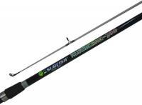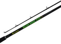 Con 2 tramos y 2,10 mts de largo. Composición en grafito IM6. Mango en corcho. Pasahilos de dos patas. Color negro con punta fluo.