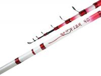Con 4 tramos y 2,70 mts de largo. Caña telescópica. Grafito IM7. Mango antideslizante. Portareel a cremallera metálico. Con 8 pasahilos de una pata de oxido, con oring.