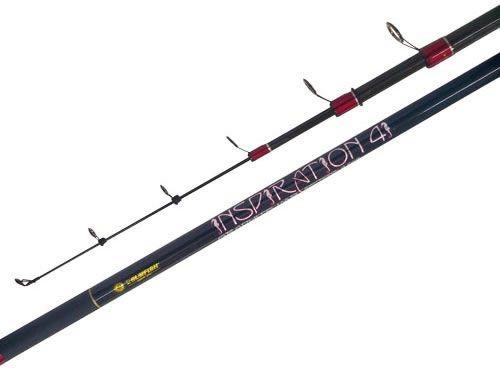 Con 2 tramos y 1,95 mts de largo. Composición grafito. Con 5 pasahilos de 1 pata en óxido. Acción de punta. Mango en goma eva con portareel.