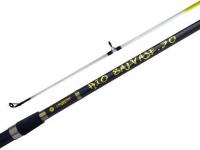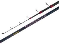 Con 2 tramos y 3,60 mts de largo. Composición grafito. Pasahilos reforzados y puntera en óxido de aluminio. Empuñadura en eva. Portareel combinado en ABS y metal.