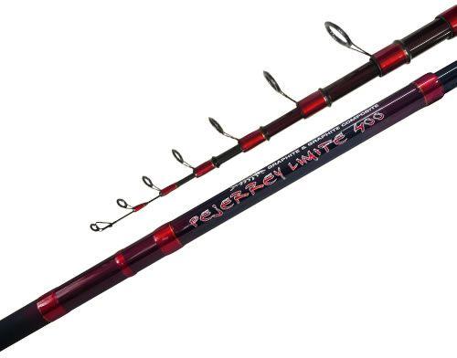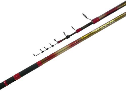 Con 4 tramos y 3 mts de largo. Caña telescópica. Grafito IM8. Grip antideslizante. Portareel a cremallera. Con 8 pasahilos.