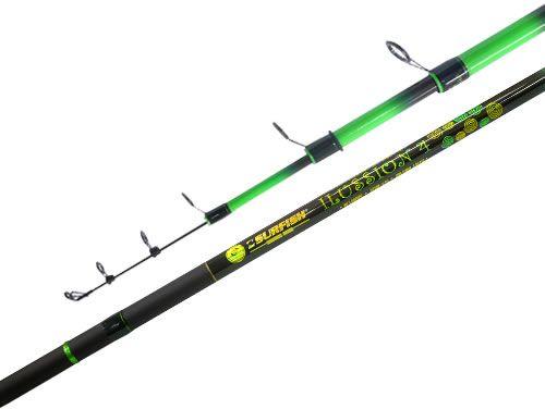 Con 2 tramos y 2,10 mts de largo Composición de grafito. Mango goma eva con portareel a rosca. Pasahilos en porcelana. Acción media.