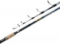 Con 2 tramos y 3,60 mts de largo. Composición grafito. Con 5 a 6 pasahilos reforzados. Puntera en óxido de aluminio siliconados. Acción media. Grip en corcho. Portareel combinado en plástico ABS y metal.