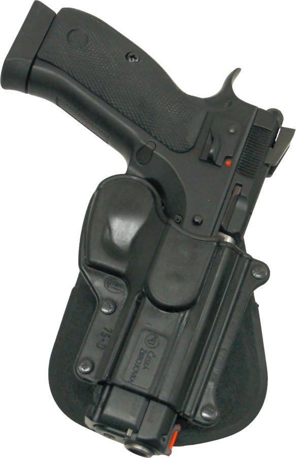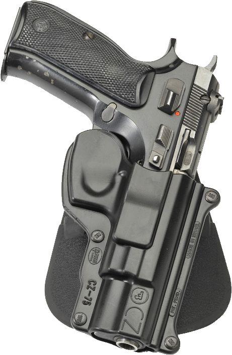 Funda rígida, molde inyectado con polímero RX18. El sistema Fobus de retención pasiva permite un desenfeunde instintivo y rápido. El mecanismo sujeta firmemente en el área del arco guardamonte, afirmando el arma en su lugar. Origen ISRAEL. Modelo standard compatible con pistolas CZ 75 / 75B (Old version) / 75BD / 85 / Cadet 22.