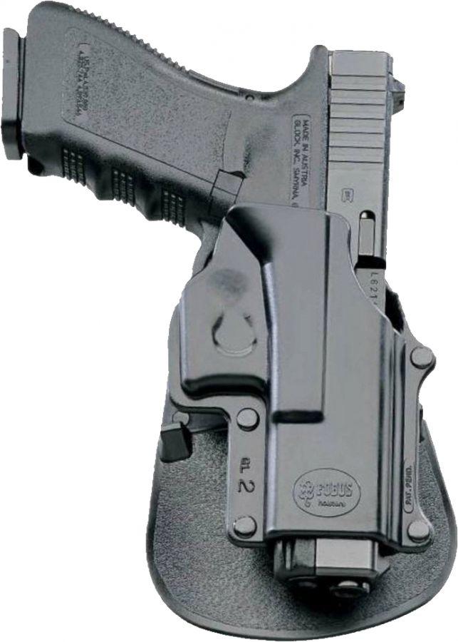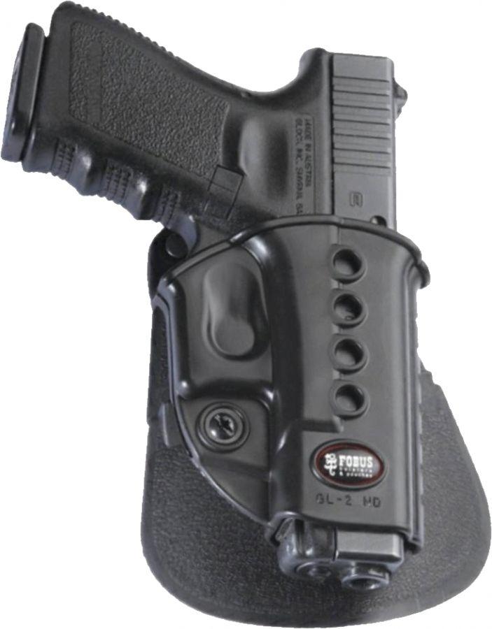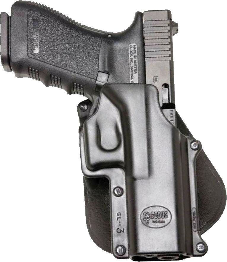 Funda rígida, molde inyectado con polímero RX18. El sistema Fobus de retención pasiva permite un desenfeunde instintivo y rápido. El mecanismo sujeta firmemente en el área del arco guardamonte, afirmando el arma en su lugar. Origen ISRAEL. Modelo standard compatible con pistola Glock modelos 19 / 17 / 22 / 23 / 34 / 35.