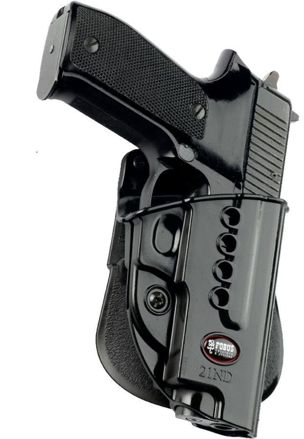 Funda rígida, molde inyectado con polímero RX18. El sistema Fobus de retención pasiva permite un desenfeunde instintivo y rápido. El mecanismo sujeta firmemente en el área del arco guardamonte, afirmando el arma en su lugar con mayor precisión de retenición según preferencia gracias al tornillo de ajuste personal. Origen ISRAEL. Modelo Nuevo Diseño compatible con pistolas Sig Sauer 220, 225, 226, 245.