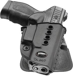 Funda rígida, molde inyectado con polímero RX18. El sistema Fobus de retención pasiva permite un desenfeunde instintivo y rápido. El mecanismo sujeta firmemente en el área del arco guardamonte, afirmando el arma en su lugar con mayor precisión de retenición según preferencia gracias al tornillo de ajuste personal. Origen ISRAEL. Modelo standard compatible con pistolas Taurus PT 24/7.