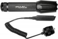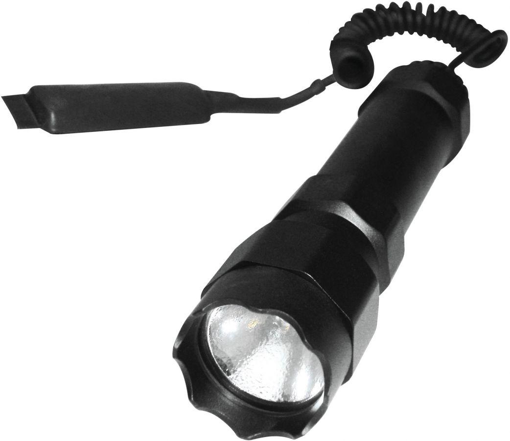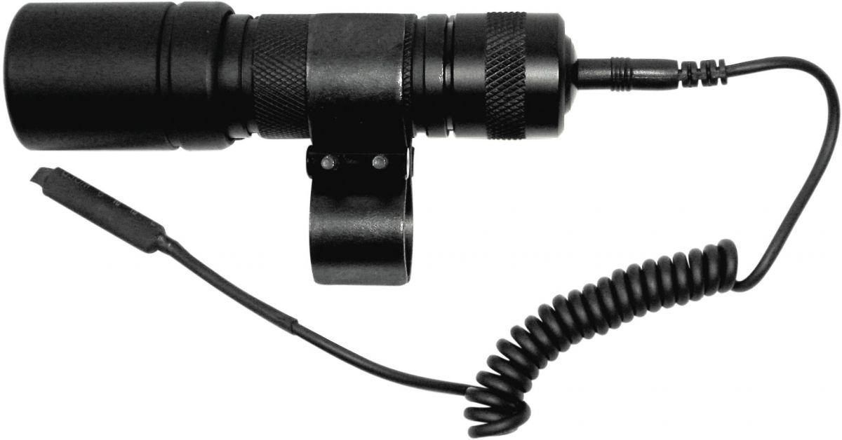 Cuerpo metalico mecanizado. potencia de 180 Lumens. Lámpara led 3W super Bright. Diametro 1". Con 2 baterías CR123A. Switch con cable remoto, anilla T/Weaver 1". Resistente al agua y a los golpes.