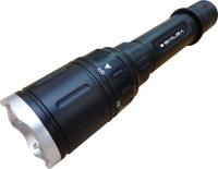Cuero de aluminio aeronaval anodizado negro de 30 mm de diametro. Ultima tecnologia de led (Cree Q4 3W). Potencia 200 lumens variables en 8 intensidades 2-4-8-15-30-60-120 y 200 lumens para optimizar energía. Haz de luz concentrado,. Incluye cable remoto. Batería 3 x AAA.