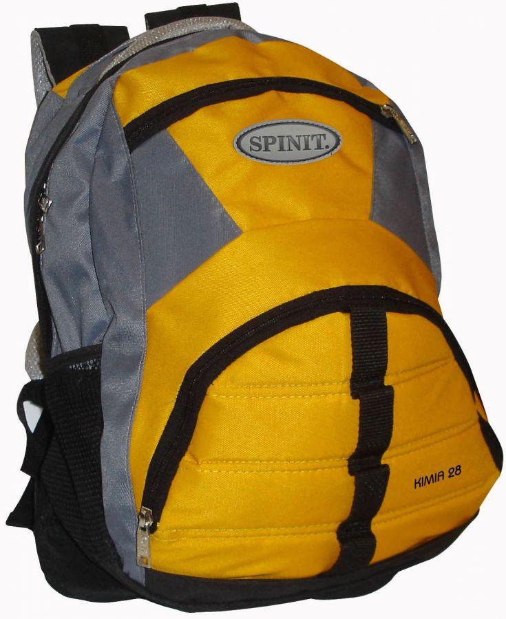 Mochila marca Spinit modelo Kimia. Capacidad de 28 lts. Con doble bolsillo frontal. Redecillas laterales. Disponibles en color rojo, amarillo y azul.