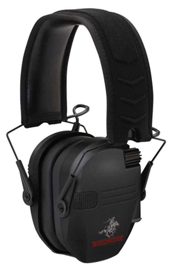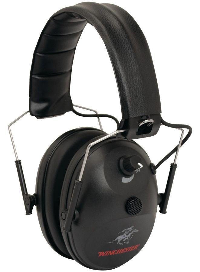 Protector auditivo Winchester electrónico, de 23 decibeles NRR (Noise Rate Reduction). Modelo Ultra Slim, con copas de perfil bajo y diseño plegable. Posee 2 micrófonos omnidireccionales. Banda de cabeza con marco de metal y recubierta en goma para un ajuste confortable. Frecuencia sintonizada para bajo nivel de ruido, con un sonido natural más claro. Altavoces de alta definición que brindan un sonido equilibrado. Tiempo de reacción de 0.02 segundos para suprimir ruidos. Incluye perilla de volumen y entrada de audio. Utiliza 2 baterías AAA.